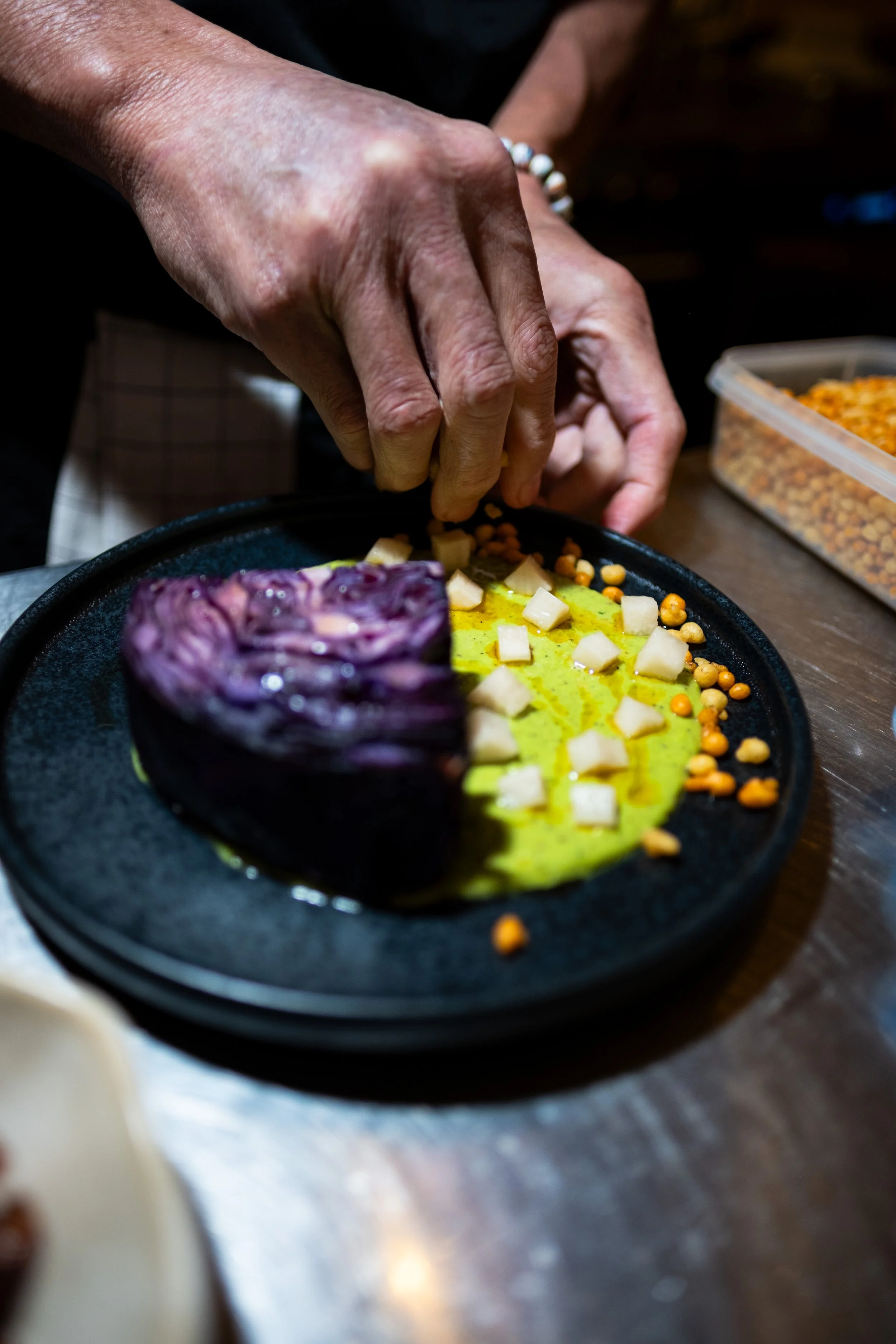 Purple cabbage · pea curry · boondhi